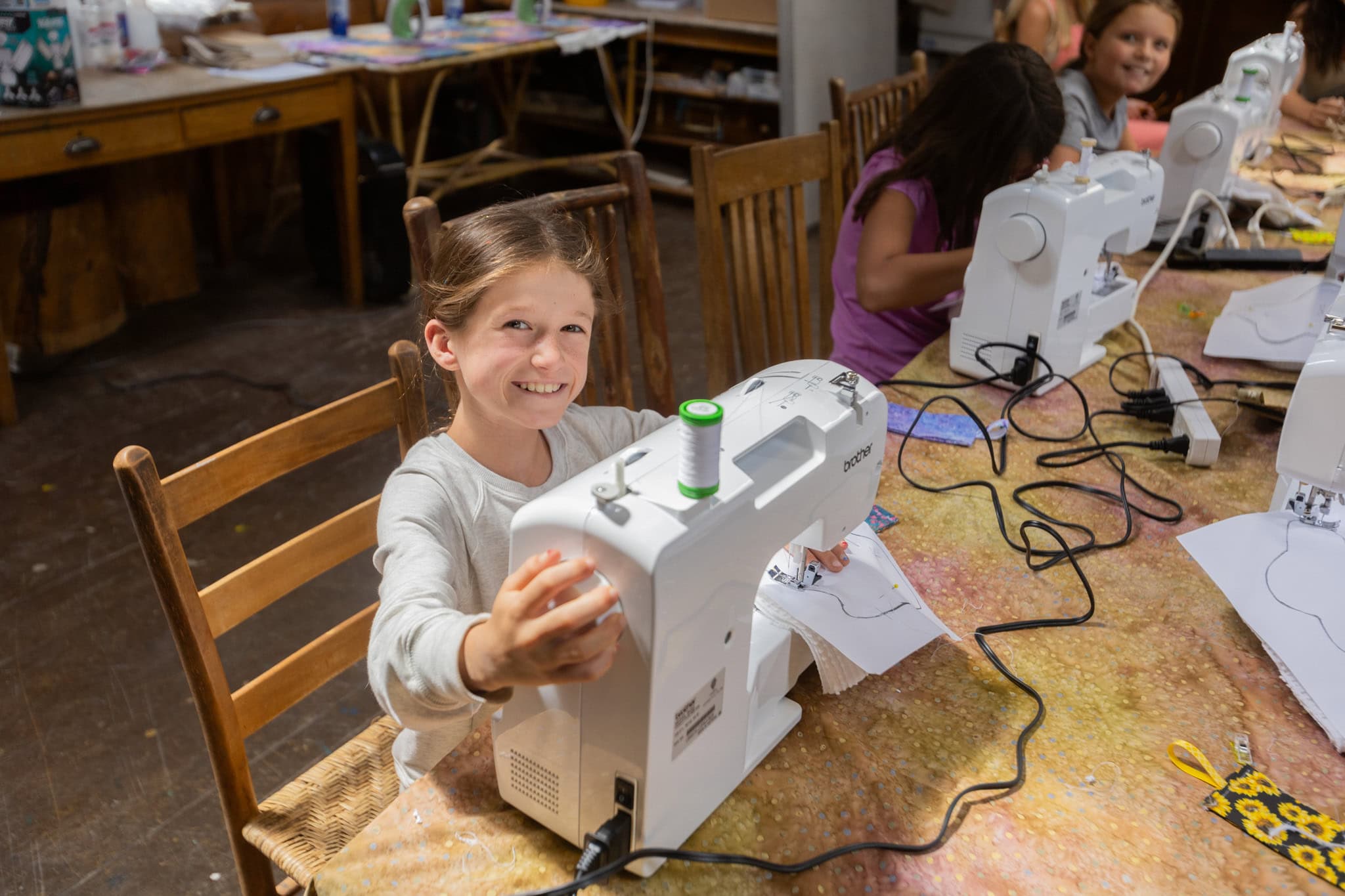 Thread, stitch, and sew your way to creative success in our Sewing program! Guided by our skilled Sewing Coordinator, campers develop both machine and hand-sewing techniques to create projects like pillows, quilts, tote bags, and more. Campers learn essential skills such as cutting, pinning, and stitching with precision, while exploring their own artistic designs. Our sewing studio features brand-new sewing machines, a wide variety of fabrics, and all the tools needed to bring their ideas to life. With projects for all skill levels, this program offers a fun and rewarding way for campers to express themselves through fabric and thread.